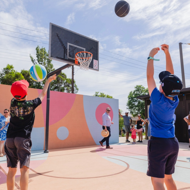 Following a warm Welcome to Country from Uncle Tamaru, hundreds of children and families enjoyed exploring the new playground, half court and hit wall, tucked in to a barbecue, coffee and gelato and made the most of face painting and giant games.